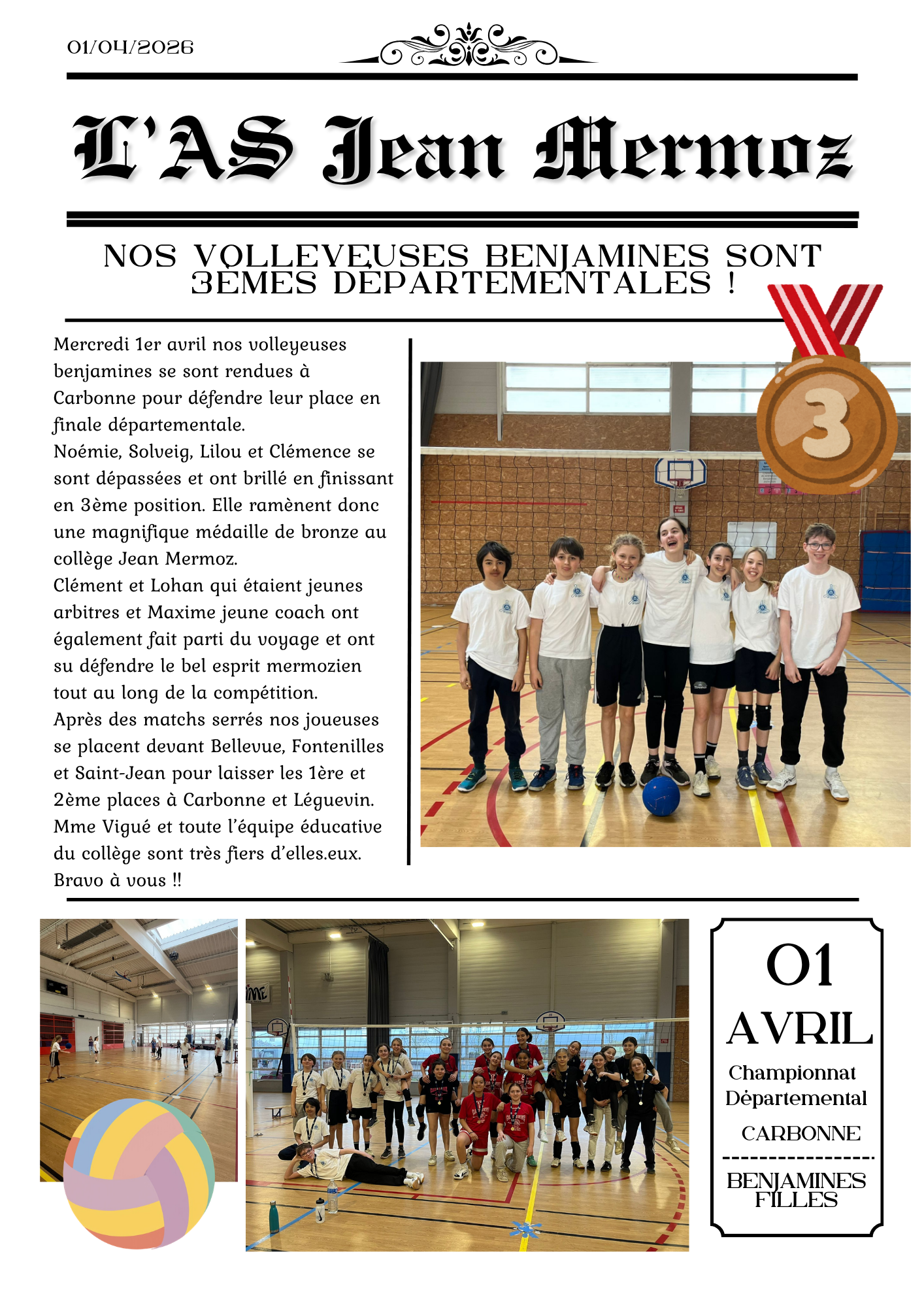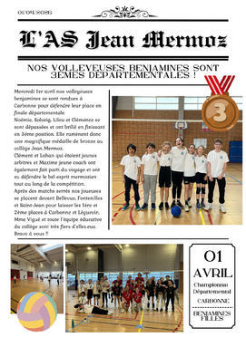 1/04 - Nos volleyeuses benjamines sont 3èmes départementales !